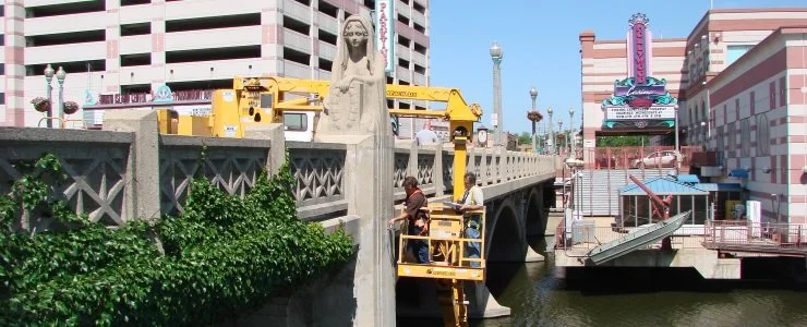Structure Evaluation Engineers, Inc. (SEE) was retained to assess the existing condition of four historic concrete statues on the John Pershing Memorial Bridge over the Fox River.