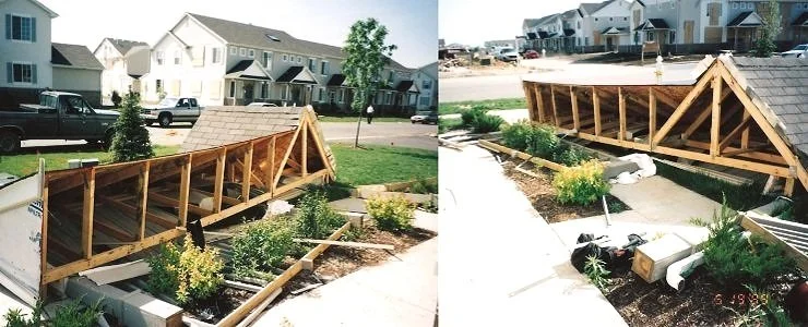 Structure Evaluation Engineers, Inc. (SEE) was retained to assess blast-related damage to approximately 100 townhomes after a natural gas explosion that damaged hundreds of townhomes and single-family homes. Four townhome buildings were blown away completely in the vicinity of the blast, and hundreds of other buildings and homes sustained various degrees of blast damage within a one-mile radius of the blast. The townhome buildings’ size varied from two units to six units, and they were constructed with prefabricated wall and floor systems with metal plate connected wood roof trusses.