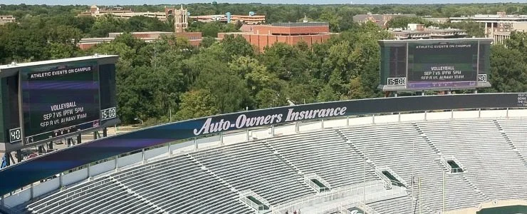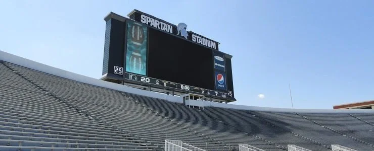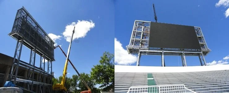 Structure Evaluation Engineers, Inc. (SEE) was retained to design three different new jumbotron scoreboards for the Spartan Stadium. The south scoreboard was approximately 140 feet wide by 60 feet high and 60 feet above the ground level. The north scoreboard included two 84 feet wide by 40 feet high boards (50 feet above the ground level) and a 15 feet high by 430 feet long ribbon screen. The ribbon screen was over the entire north side of the stadium.